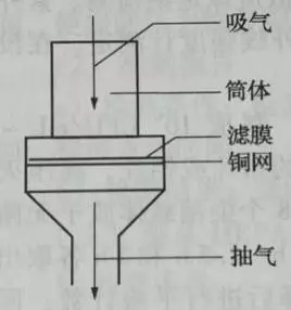 開動電機后,抽氣泵工作,帶動空氣吸入采樣頭,空氣通過濾器的時候,大于濾膜孔徑的顆粒被阻留,當達到預先設定吸氣體積后抽氣泵停止工作,將濾膜取出轉貼到培養(yǎng)基上,培養(yǎng)后計算空氣中微生物的濃度。過濾式采樣器捕獲效率高,但是濾膜材料可能影響微生物的存活率,還有采樣阻力大、流量易變的缺陷。